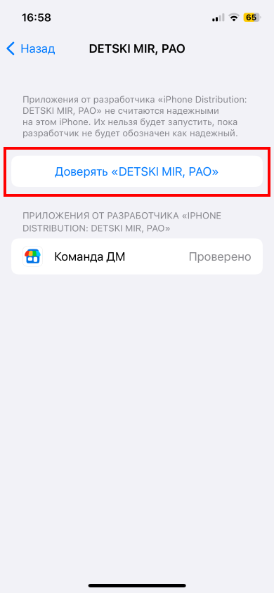 Нажмите «Доверять». Для iOS 18.0 и выше потребуется разово перезагрузить телефон